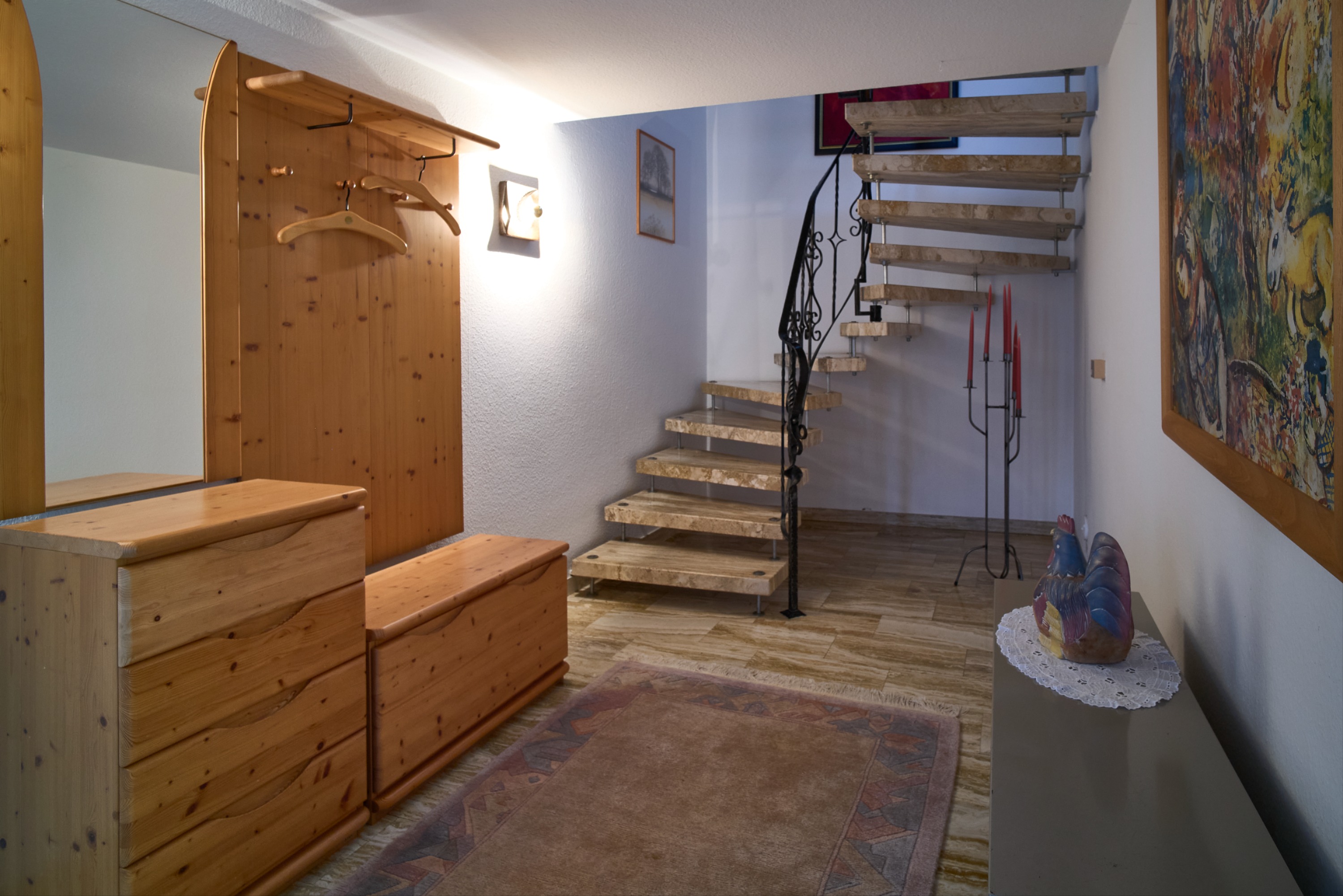 Die zur Wohnung ausgebaute Scheune wurde ebenso in sehr solider Qualität mit 45 cm dicken Außenwänden errichtet und bietet mit rund 190 m² Wohnfläche ein großzügiges Wohn- und Raumgefühl. Vier-einhalb Zimmer, eine Küche, ein Wannenbad sowie zwei zusätzliche Duschbäder schaffen viel Platz und Flexibilität. Beheizt wird dieses Gebäude mit Nachtspeicher-Elektroöfen der Marke MALAG. Ein Balkon und eine Terrasse in sonniger Süd-West-Ausrichtung laden zum Entspannen ein. In süd-westlicher Richtung schließt sich zudem ein ehemaliges Wingert-Grundstück als Garten an, das der Wohnung eine attraktive Erweiterung des Außenbereichs bietet.