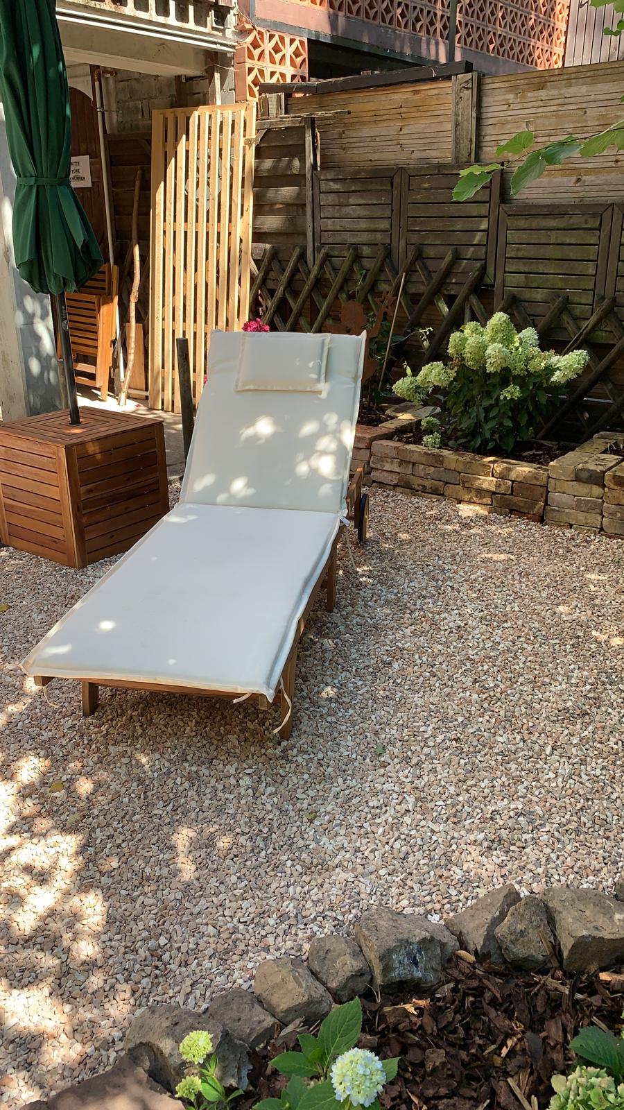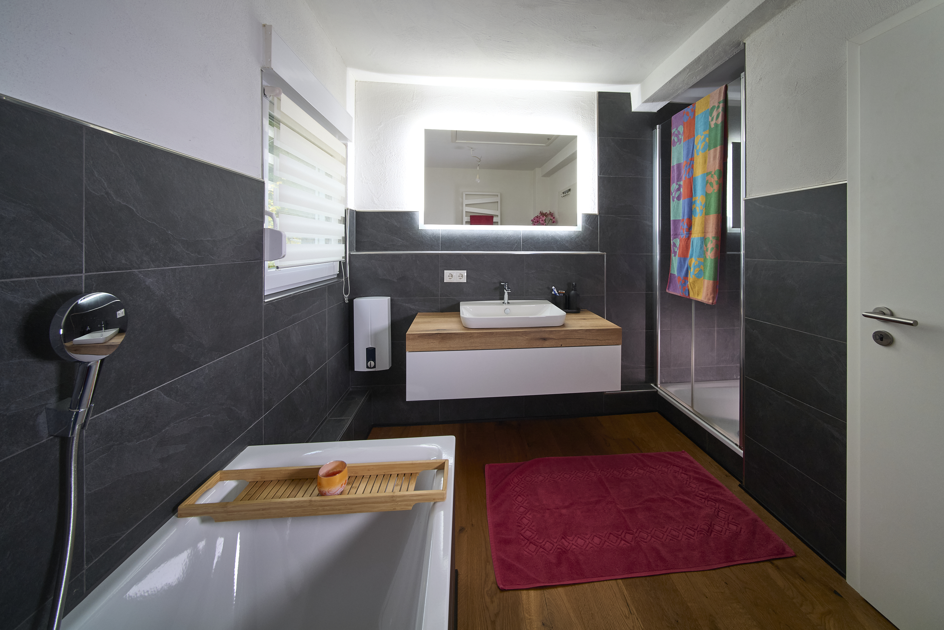 Ein Highlight ist die großzügige neu überdachte Balkon-Terrasse mit Blick auf Wald und Bach! Hier wurde ebenso der Belag neu in Granit ausgeführt, wie auch die Außentreppe zur Gartenterrasse neu mit Granit belegt.
