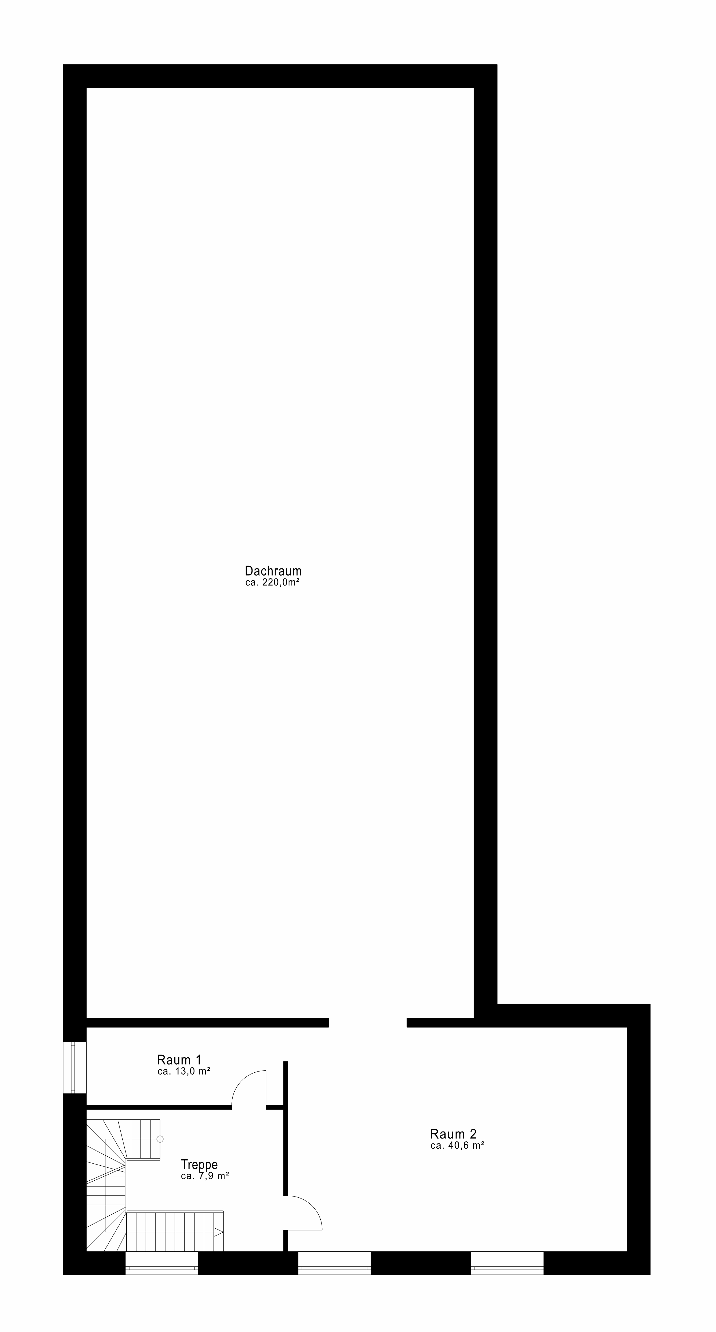 Das Obergeschoss ist nach Angaben für Wohnzwecke nutzbar, jedoch bislang nicht hierfür fertiggestellt, sondern im Rohbauzustand. Der Dachraum über dem Billardraum ist nicht ausgebaut, birgt jedoch weiteres Potential.